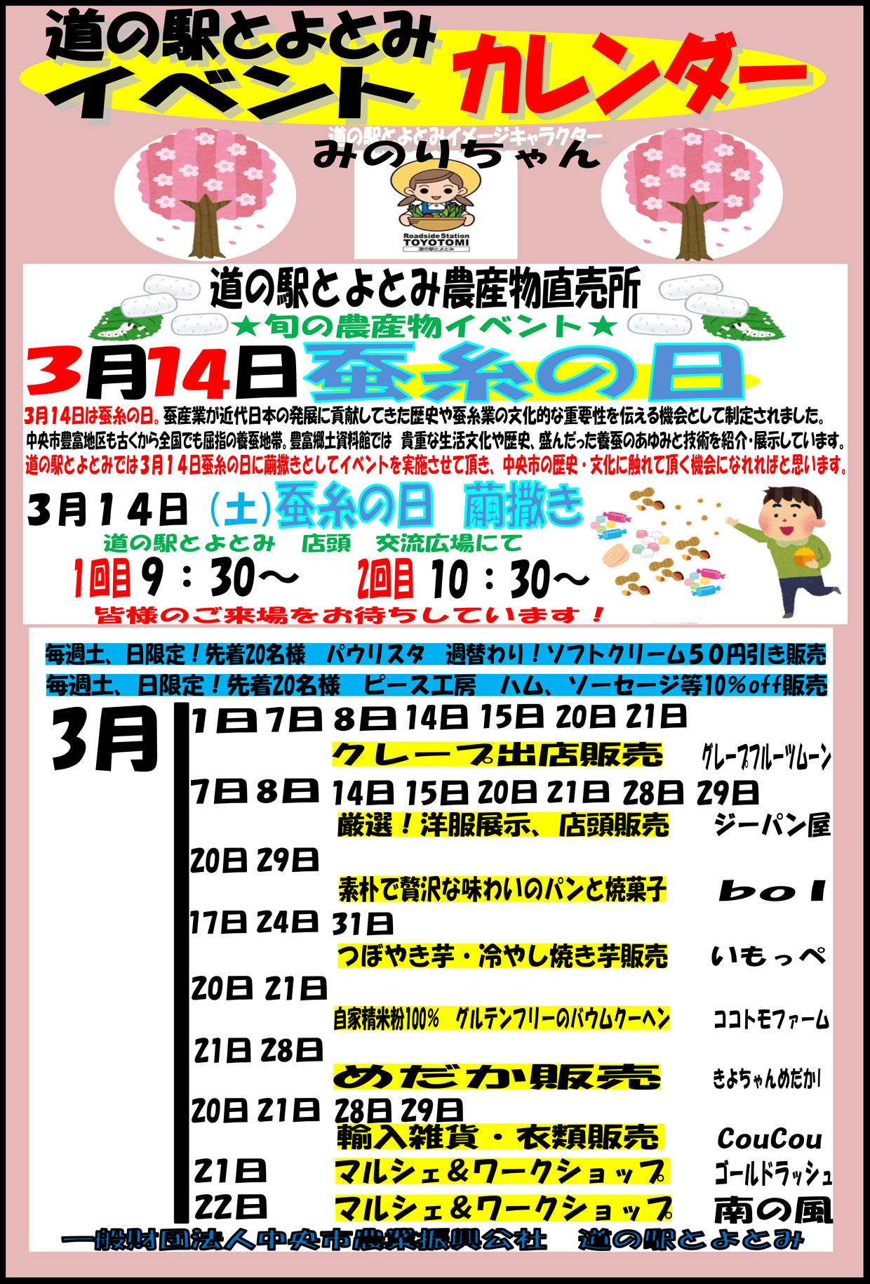 | 蚕糸の日繭撒き | 道の駅とよとみ | |
