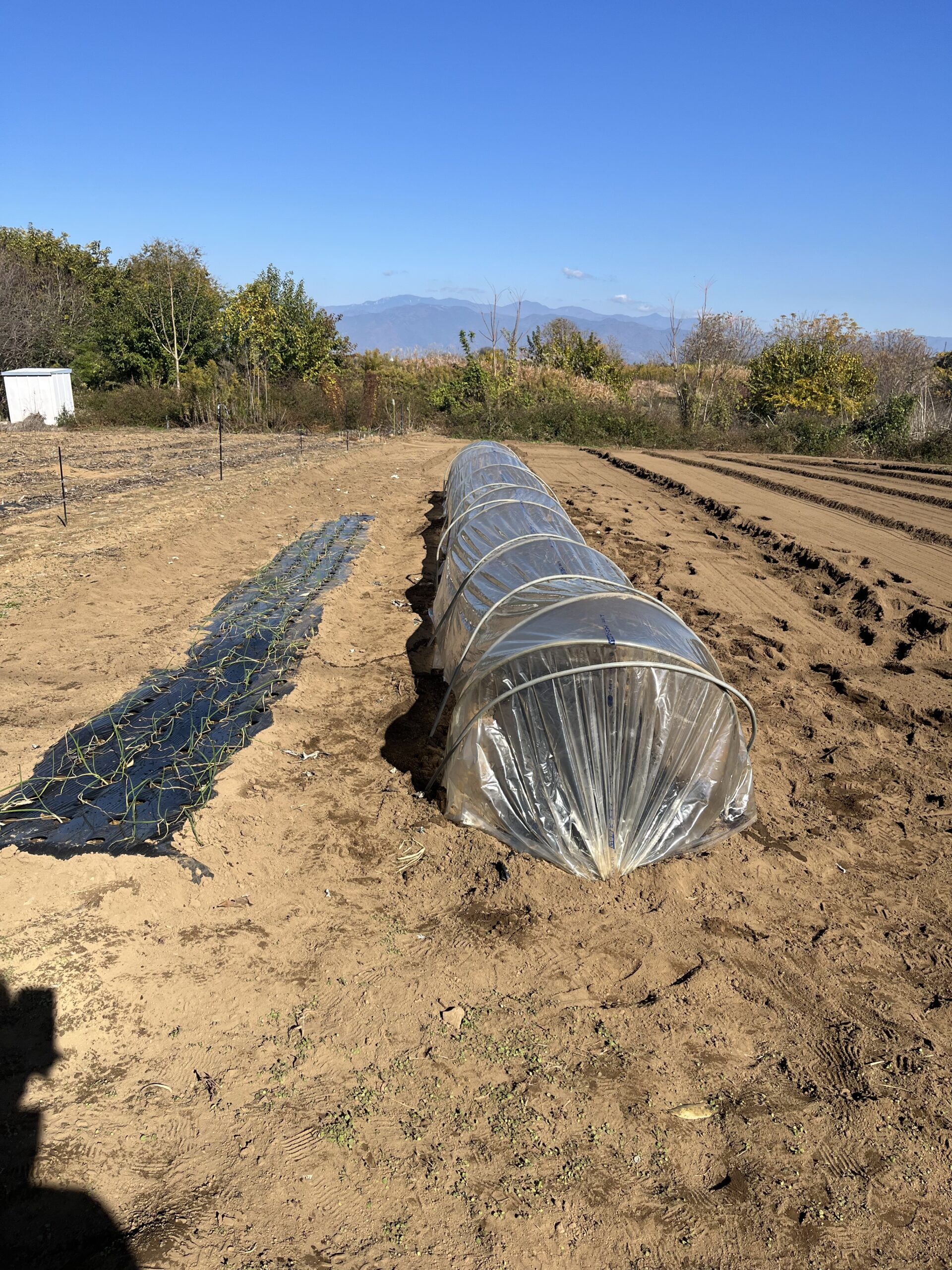 これからの時期は気温も下がってきますので、ビニールトンネルを使用する方法も教えていただきました。