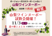 | 3 (月) | 2025年山梨県産ワインヌーボー 山梨県のワイナリー自慢の新酒解禁試飲会 | 道の駅とよとみ |